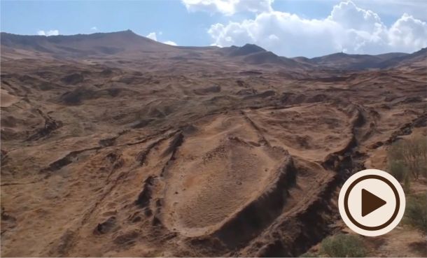 Pohľad na tvar pozostatkov Noemovho korábu / archy z dronu