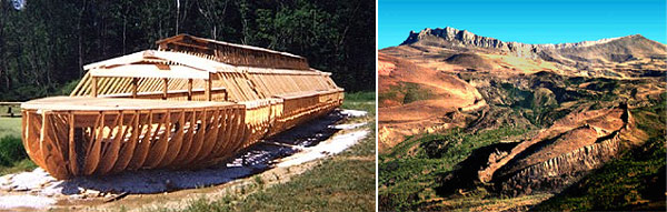 | Rekonstrukce lodě a pohled na údolí kde se nachází Archa. |