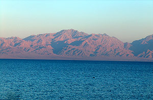 Pohled na Saudskou stranu z Nuweiby. To se na hloubku zaznamenávajících přístrojích projevuje |