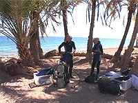 | Při oblékání výstroje na pobřeží Nuweiby. |