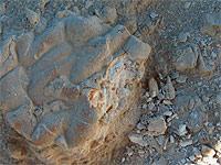 | Záběr na částečně roztavenou horninu. |