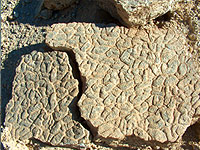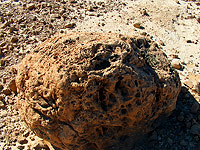 | Část povrchu stolu, který jsem shodil na zem. Je dokonale rovný a po sirném děšti zpuchýřovatělý, avšak povrch pro svoji ušlechtilost dochoval tvar. Pod puchýřky síry se nachází vyhořelá síra. |