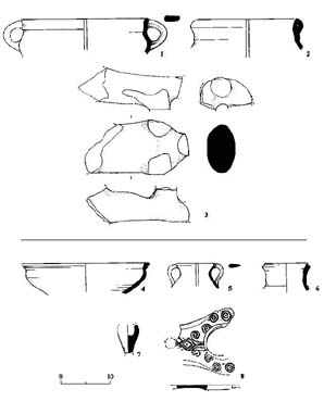| 3 – Hrnčířské výrobky. | 5 – Nálezy skla (kresby). |