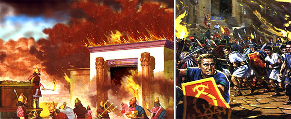 | Reprodukce zničení Šalomounova chrámu v roce 586 př. Kr. |